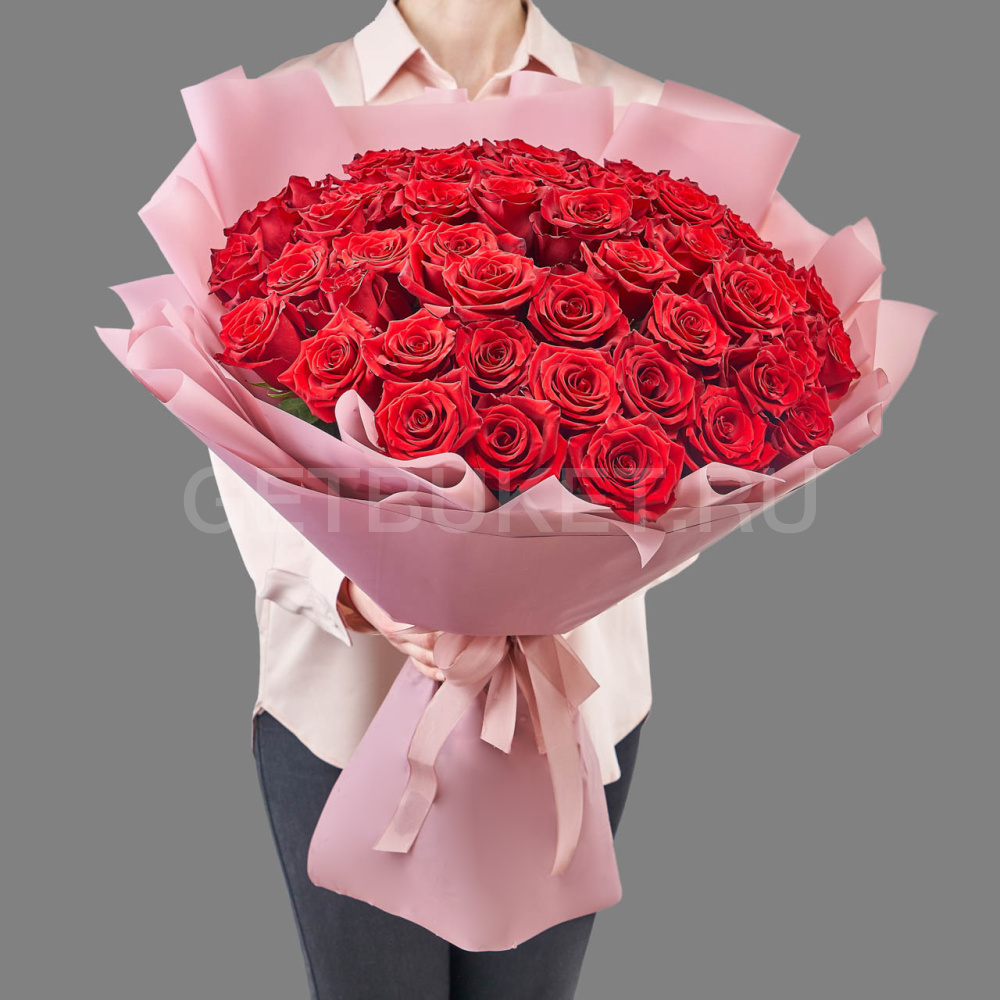 Букет из 51 красных роз в упаковке