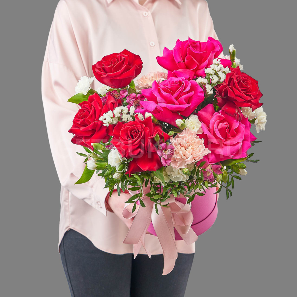 Композиция из красно-розовых кенийских роз в шляпной коробке11 220 ₽Композиция из красно-розовых кенийских роз в шляпной коробке 11 220 ₽ -