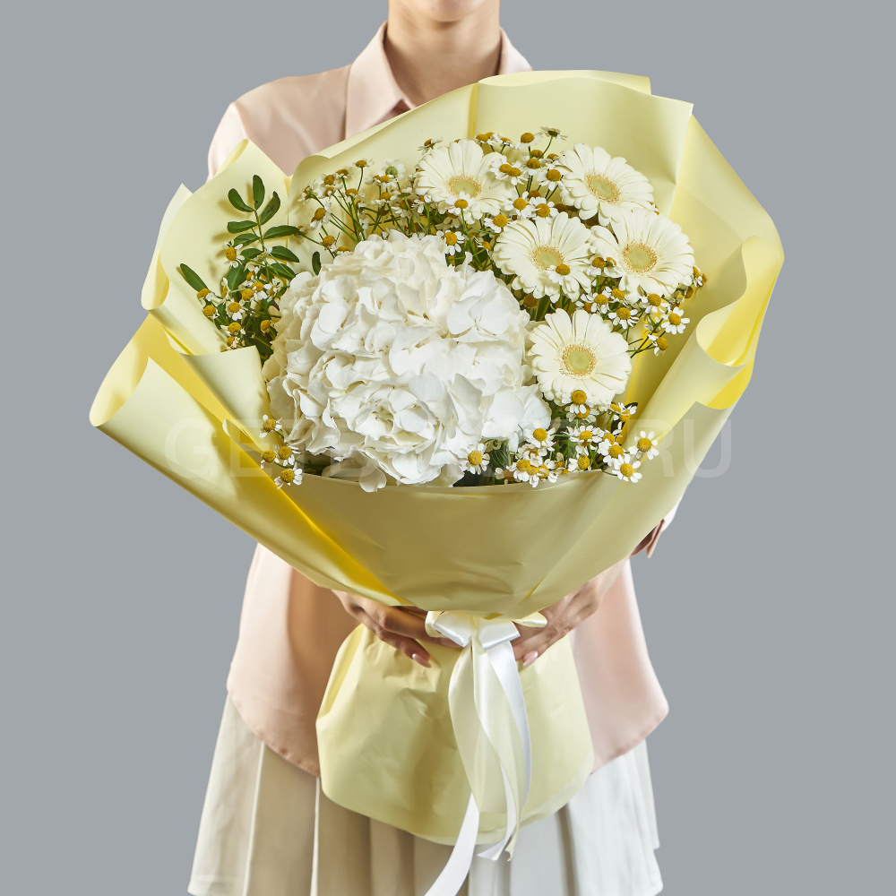 Букет из гербер, гортензии и танацетума