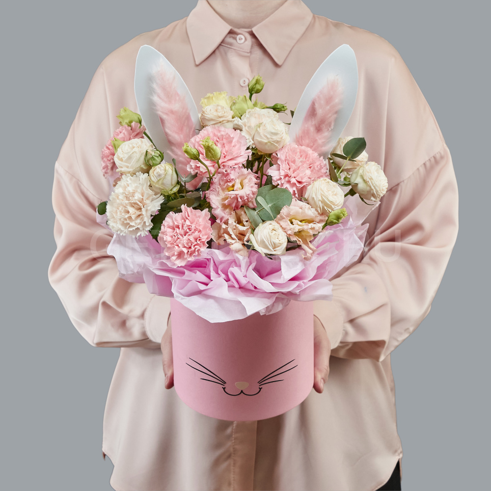 Нежная цветочная композиция из роз, гвоздик и эустомы в шляпной коробке6 440 ₽Нежная цветочная композиция из роз, гвоздик и эустомы в шляпной коробке 6 440 ₽ -