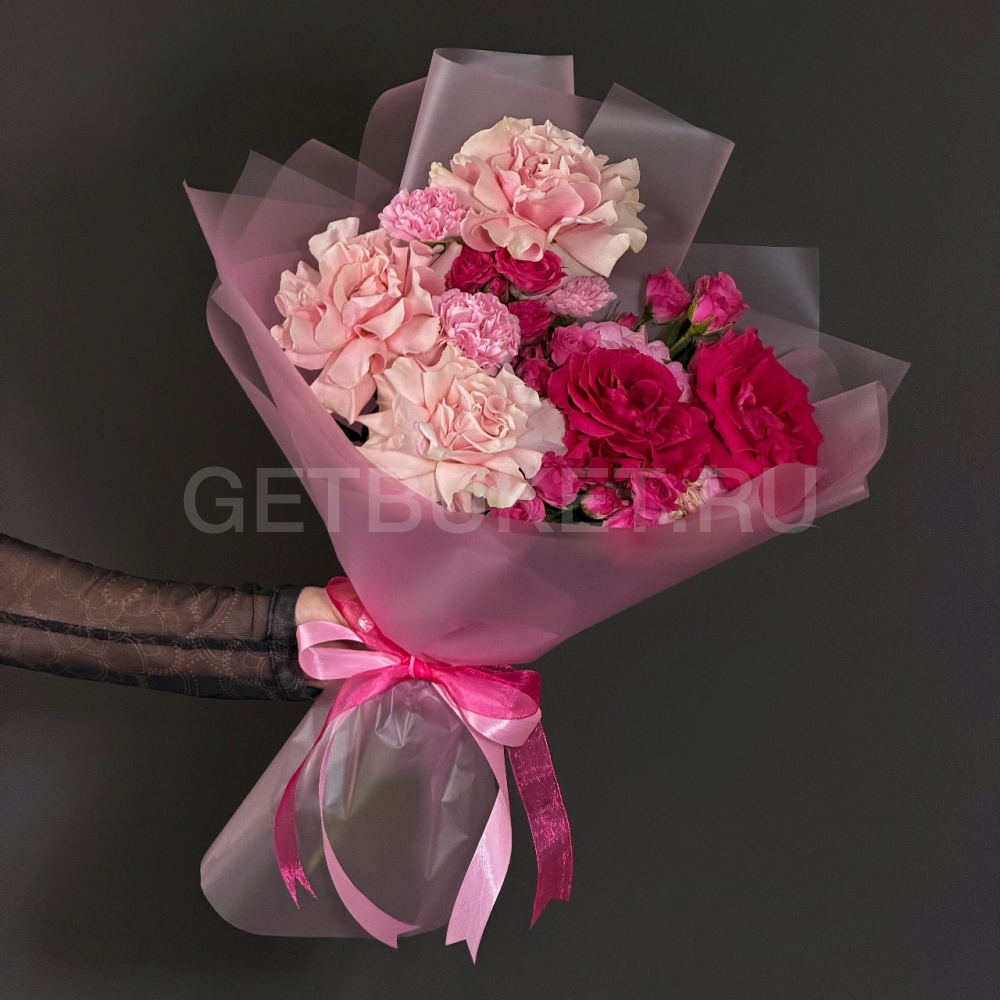 Возможны минимальные отличия букета от фотографии и допустимы отличия по цветовой гамме, так как цветы являются природным материалом и собираются вручную