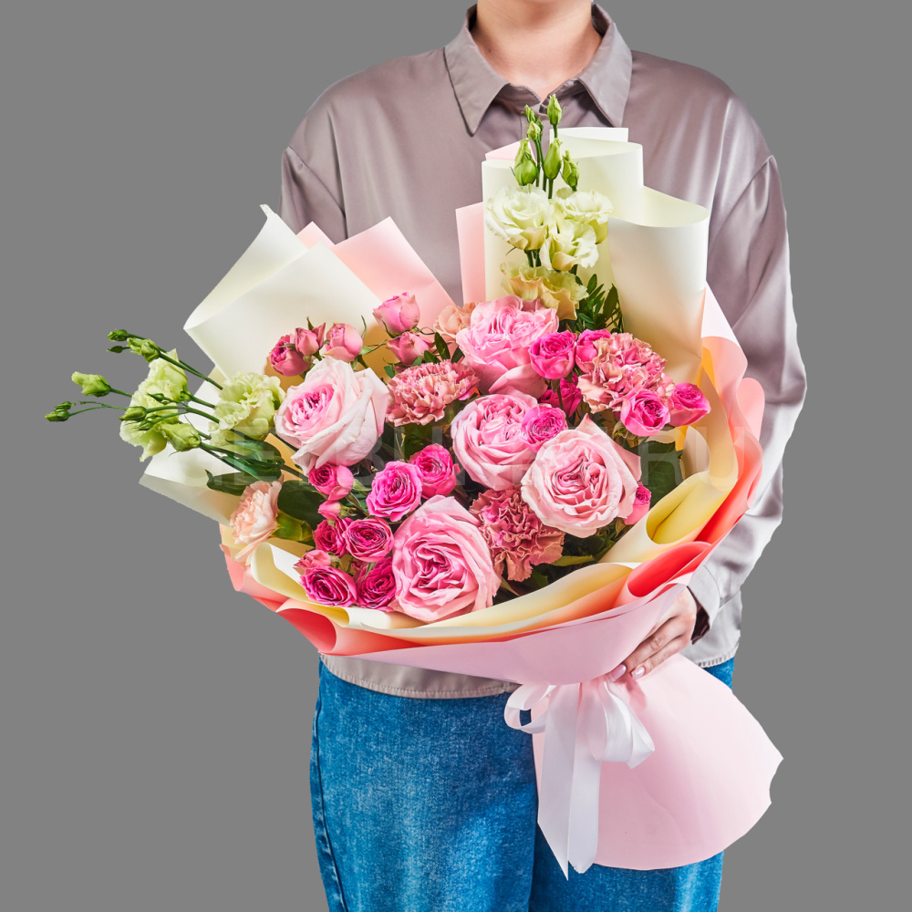 Букет из розовых гвоздик, роз и альстромерий4 070 ₽Букет из розовых гвоздик, роз и альстромерий 4 070 ₽ -