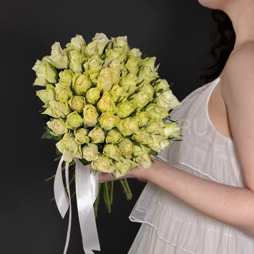 Букет из 51 белой кенийской розы
