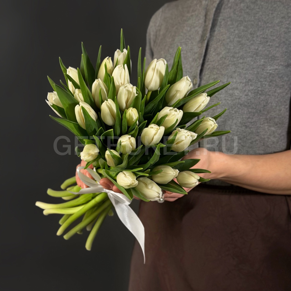 Букет из 25 белых тюльпанов