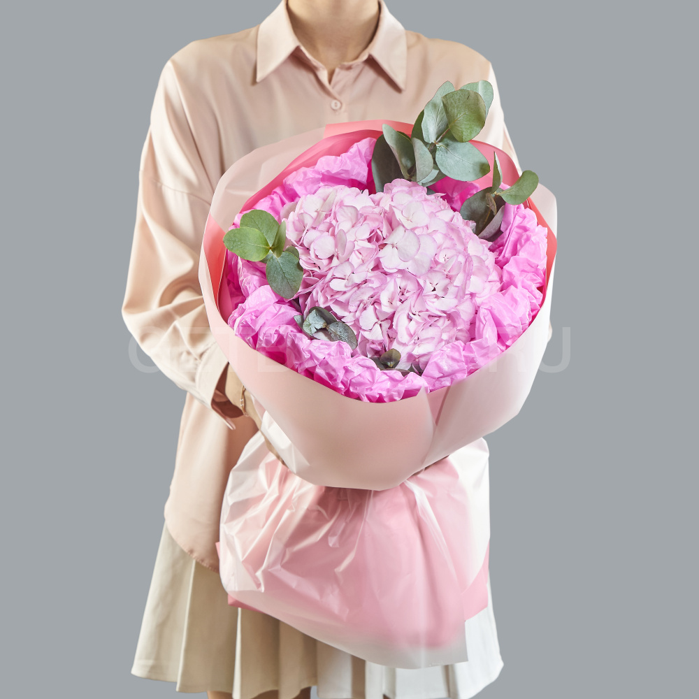 Букет из розовой гортензии с эвкалиптом